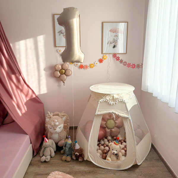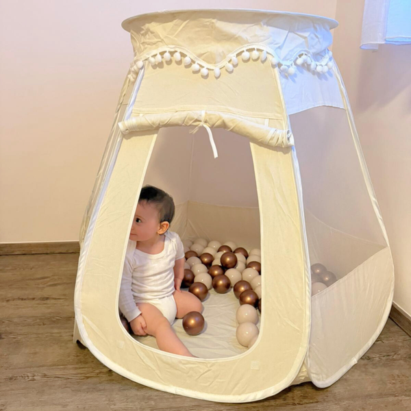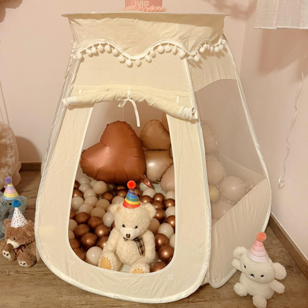 Pop-Up Bällebad-Spielzelt aus Baumwolle/Hanf