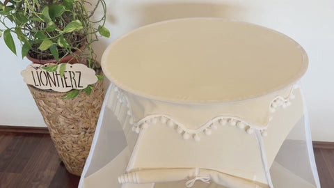 Die zarte Bommel-Bordüre verleiht dem Bällebad-Zelt seinen besonders liebevollen LIONHERZ-Charakter und macht es zu einem stilvollen Highlight im Kinderzimmer.