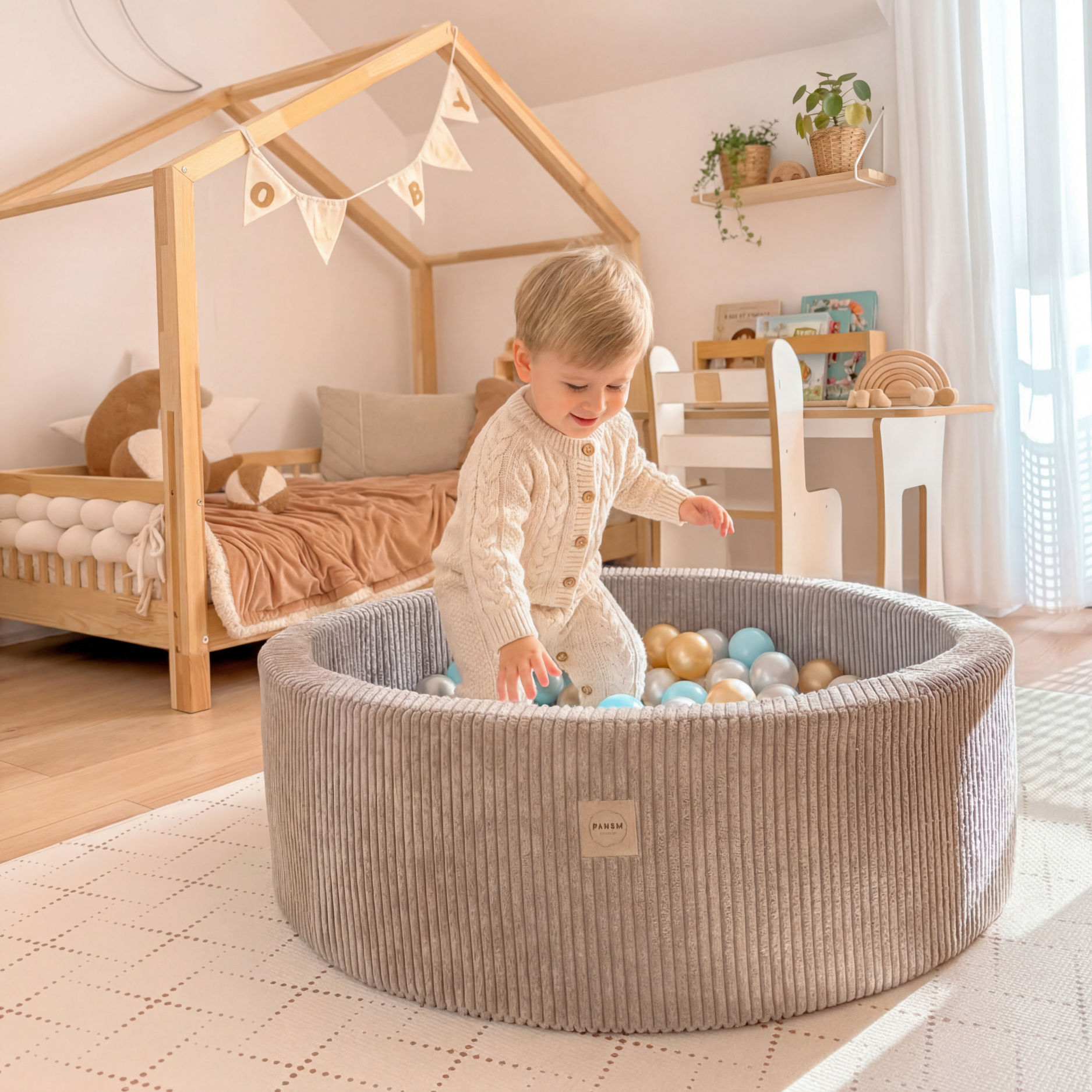 Der "Bally Pool" ist ein zeitlos schönes Bällebad und bringt jede Menge Freude ins Kinderzimmer. Mit seinen 200 farblich abgestimmten Bällen entsteht ein buntes Spielparadies, das zum Greifen, Krabbeln, Werfen und Entdecken einlädt. Dabei werden spielerisch Motorik, Hand-Auge-Koordination und sensorische Fähigkeiten gefördert.