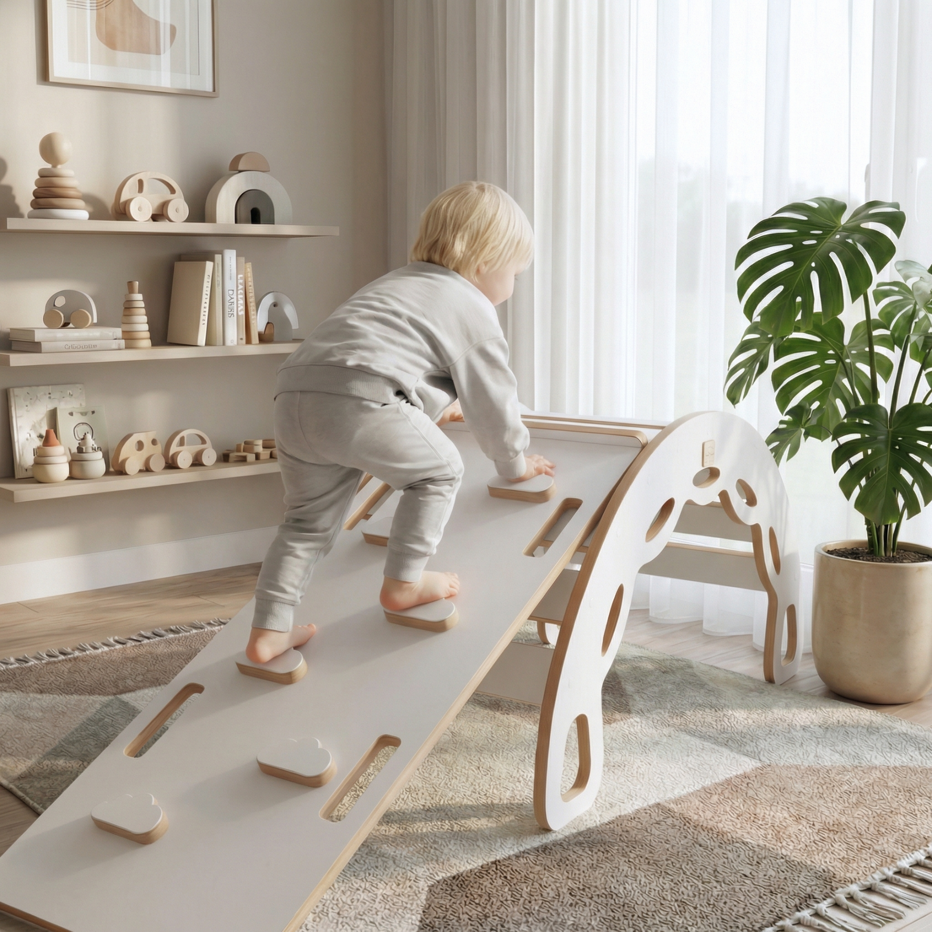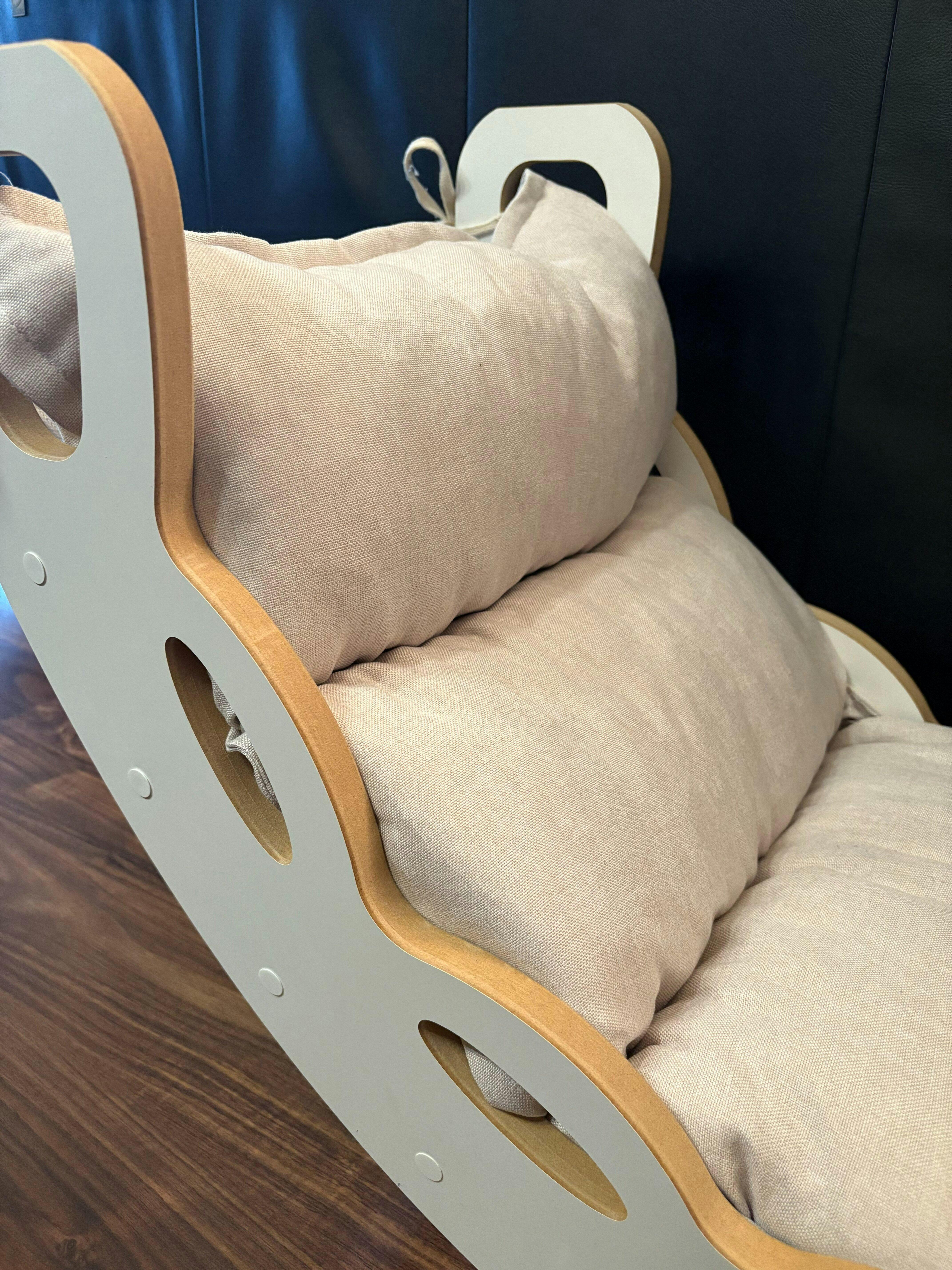 Der "Big Rocker" 3in1 bringt Bewegung und Fantasie direkt ins Kinderzimmer. Mal wird er zur Wippe, mal zum Kletterbogen, mal zur Rutsche – und zwischendurch lädt das weiche Kissen zum Ausruhen ein. So entstehen Abenteuer, die Kinder stärken, fröhlich machen und jeden Tag neu inspirieren.