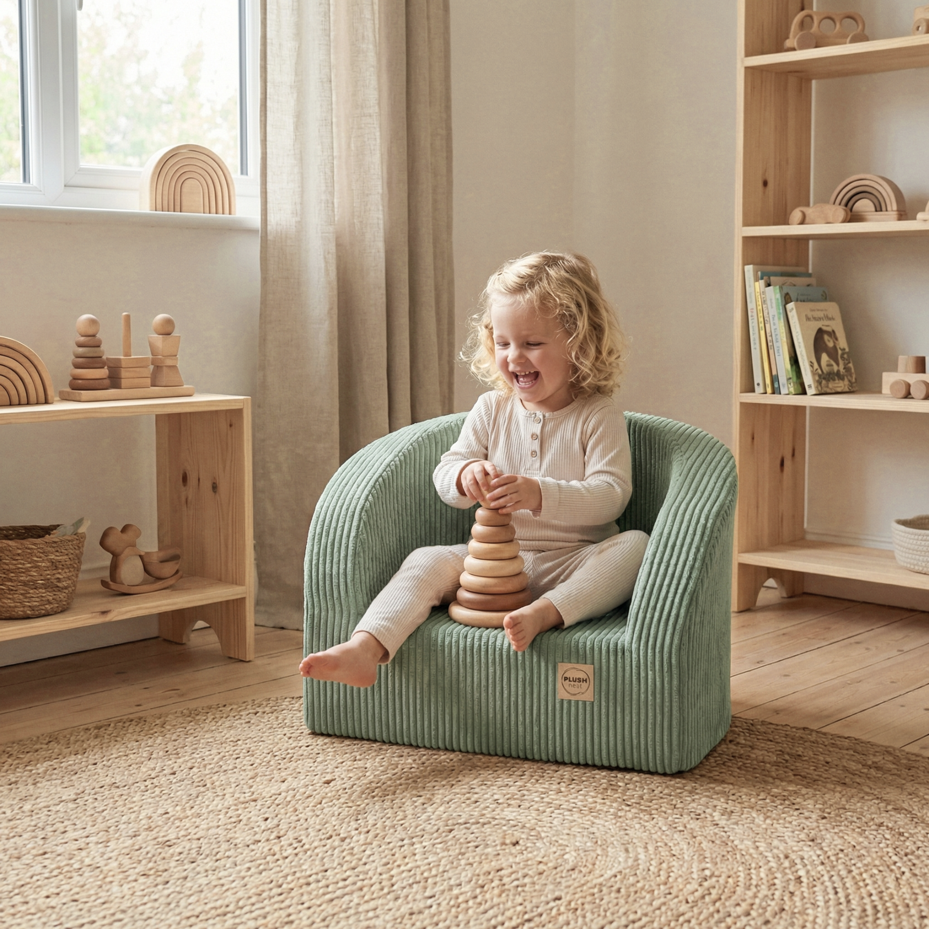 Ob zum Bilderbuch lesen, Kuscheltiere sortieren oder einfach zum Träumen – der "Cuddle Chair" schenkt Geborgenheit und Komfort im Kinderalltag. Mit seiner kindgerechten Größe und dem weichen Cordstoff lädt er zu vielen gemütlichen Momenten ein.