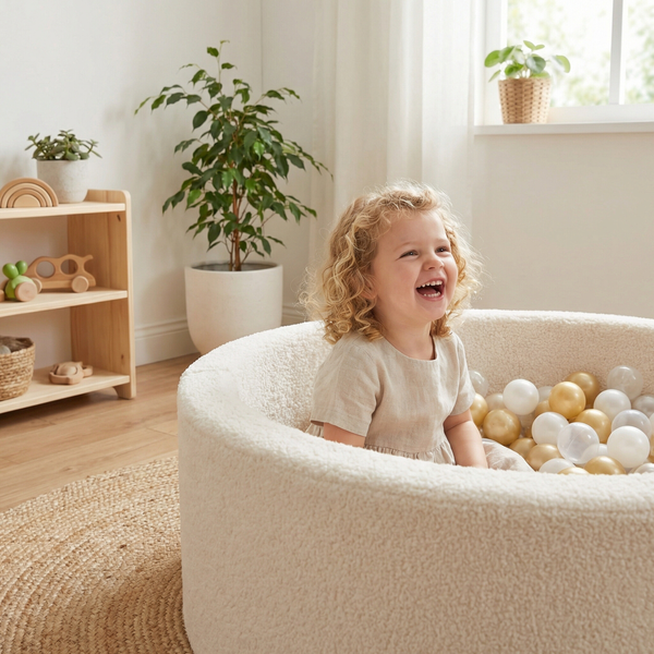 Das "Woolly Castle" lädt Kinder ein, in ihre Fantasiewelt einzutauchen. Klettern, rollen, rutschen oder im kleinen Bällebad versinken – jedes Detail wurde dafür geschaffen, Kreativität und Motorik zu fördern. Der flauschige Bezug in Lammfell-Optik schenkt Geborgenheit, während die 150 Bälle für fröhliche Momente sorgen.