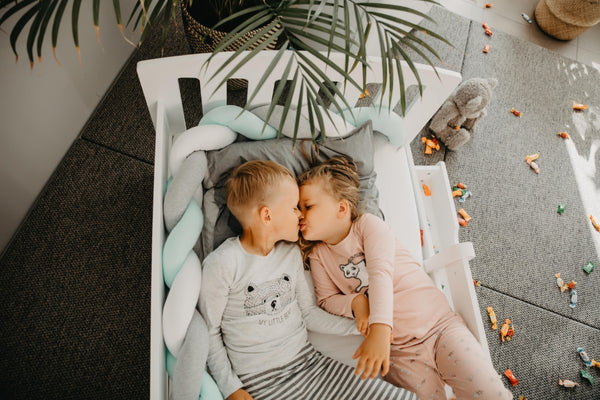Die Welt von Kindern ist bereits bunt genug. Wir legen Wert auf gedeckte Farben und sparen bewusst mit Mustern, sodass dein Kind auch visuell zur Ruhe kommen kann.
