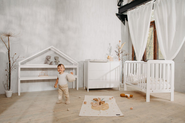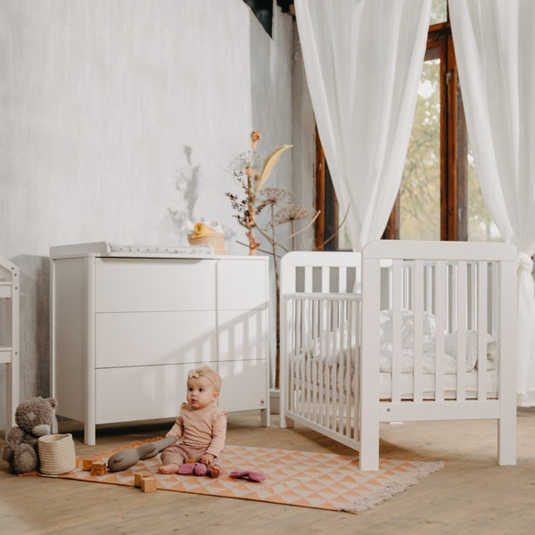 Die Kommode verfügt über 3 große Schubladen, die dank Teleskopauszug vollständig geöffnet werden können. So hast du jederzeit einfachen Zugriff auf Kleidung, Windeln und alle wichtigen Babyutensilien.