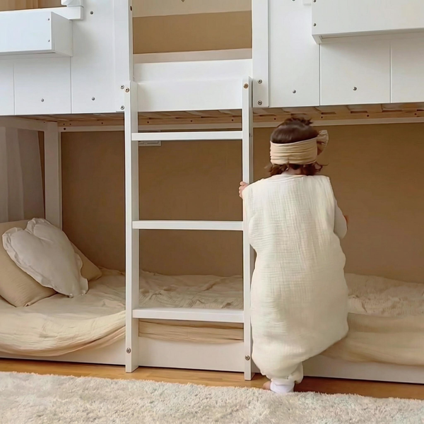 Die Welt von Kindern ist bereits bunt genug. Wir legen Wert auf gedeckte Farben und sparen bewusst mit Mustern, sodass dein Kind auch visuell zur Ruhe kommen kann.